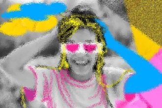 Abstract art, collage with female portrait and mountains, generative ai